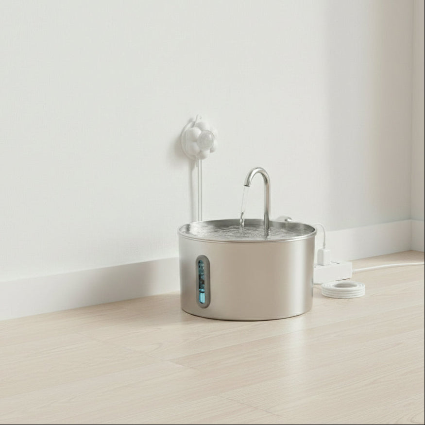 KORA diffuse une eau fraîche et filtrée en continu, presque inaudible.