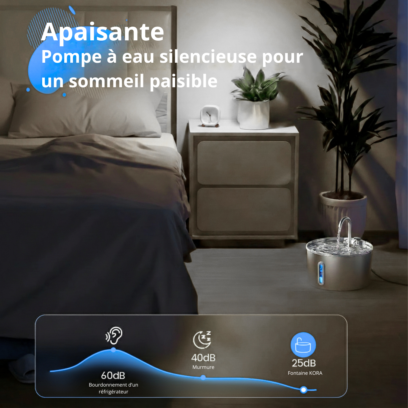 Exactement ce que je voulais. La fontaine à eau est très silencieuse, on ne l’entend pas fonctionner. Le capteur est très utile pour limiter le gaspillage d’électricité car grâce à lui, la fontaine ne s’enclenche que lorsque c’est nécessaire. Parfait.
