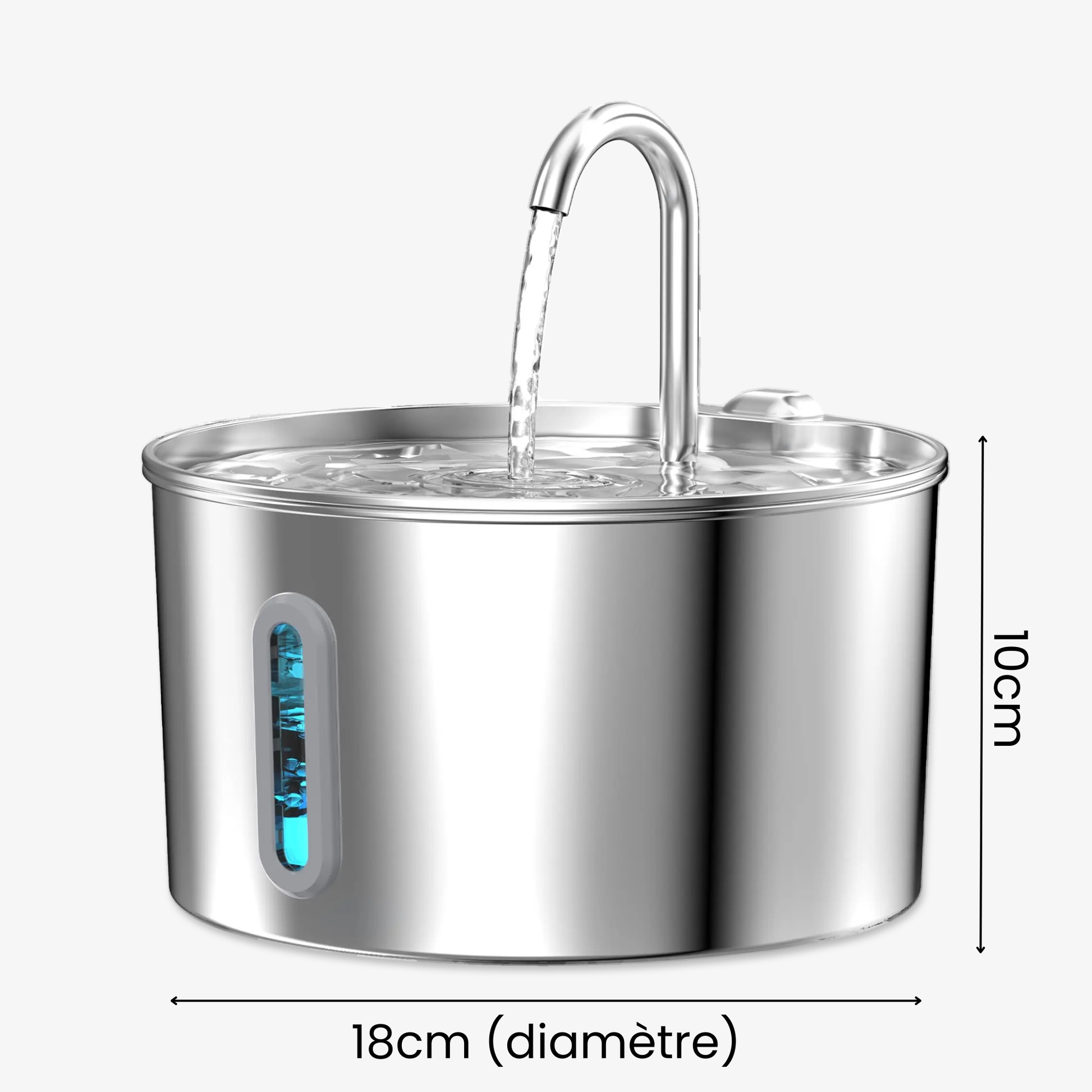 Cette fontaine en inox diffuse un flux constant et purifié, stimulant l'envie naturelle de boire chez votre chat tout au long de la journée. Son système silencieux (sous les 20 décibels) garantit un confort absolu, même durant votre sommeil.